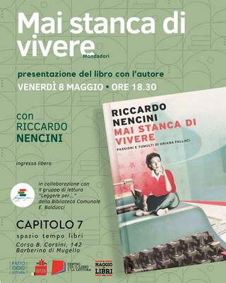 Nell'ambito del progetto di lettura dedicato a Oriana Fallaci del Gruppo di Lettura "Leggere per..." della Biblioteca comunale E. Balducci, dedicato a Oriana Fallaci, la Libreria Capitolo 7, sottoscrittrice del Patto locale per la Lettura, organizza la presentazione del libro novità Mondadori "Mai stanca di vivere" con l'autore Riccardo Nencini.